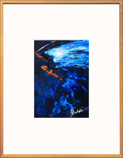 紙にインクジェットプリント、アクリル絵具