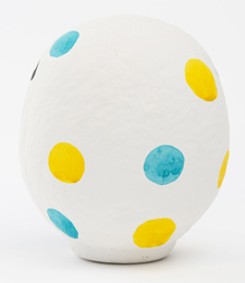作品裏側 曄田依子氏の描く現代の狛犬は、愛玩犬のように主人にぴたりと寄り添って「守護と愛を司る聖獣」ですが、本作は、その存在をダルマで表現したものです。手描きで一点ずつ着彩した人気作。イエロー×ピーコックグリーンは、太陽と緑。「豊穣、商売繁盛」を表しています。一点ずつ手描きのため、細部が写真と多少異なる場合があります。