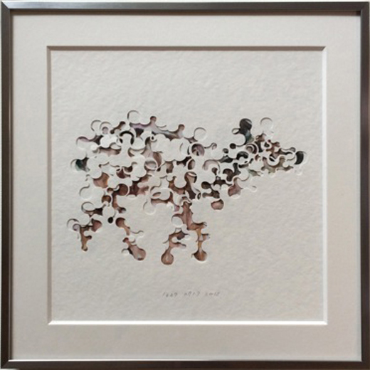 福津宣人は90年代半ばから、パターン・ペインティングともいうべき独自の絵画様式で注目を集めてきたアーティスト。絵筆とキャンバス、またはペンとタブレットによって丹念に塗られる、夥しく細かいパターン文様は、彼の手によって糸のように織り進められ、美しい変化を編みながら、私たちの網膜へ描写対象をしっかり送り届けてくれます。描こうとする対象の「具体」と、パターンという「抽象」。その中間にある無限の広がりへと見る者を手招きするのが彼の絵画なのです。パターンの連射は描写対象との執拗で濃厚なダンスであり、だからこそ具体と抽象の間に横たわる本質を深くすくいとれるのでしょう。数多くの建築家たちとの交流も、そのプロセスや考え方が支持されているからに他ありません。本作は、パンチングで切り抜いた紙を、画像と重ね合わせて作られた作品です。