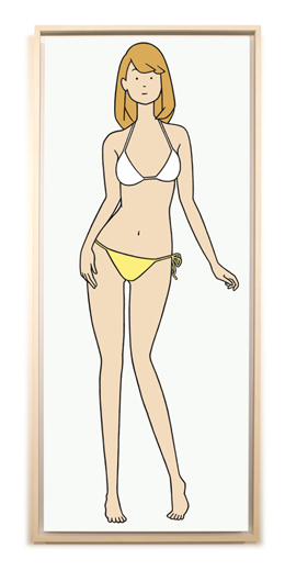イラストレーター、白根ゆたんぽ氏のデジタル出力+加工作品です。様々な媒体で話題になっている「GIRLS SHOW」シリーズの一作。シンプルな線なのに、見るもののイマジネーションに働きかける官能的な絵柄。とぼけた愛らしさをもった軽みのあるポージング。どれも、イラストレーションの枠を超えた洗練さが新鮮です。本作は、2015年の個展「MECHANISM OF GIRLS」に展示され、好評を集めました。天地90センチの迫力あるシリーズ。インクジェット出力紙を3ミリ厚のアルミ複合板に圧着した後、木製額に収め、すぐ飾っていただけるように作成したインテリア好適品です。エディションはありませんが、作家サインが裏面に入ります