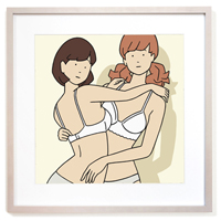 イラストレーター、白根ゆたんぽ氏のアクリル画です。様々な媒体で話題になっている「GIRLS SHOW」シリーズの一作。シンプルな線なのに、見るもののイマジネーションに働きかける官能的な絵柄。とぼけた愛らしさをもった軽みのあるポージング。どれも、イラストレーションの枠を超えた洗練さが新鮮です。本作は、2015年の個展「MECHANISM OF GIRLS」に展示され、好評を集めた「2 Girls Composition」シリーズ7点のうちの1点です。