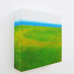 Landscape series 地平線に向かいどこまでも続く、丁寧に描かれた鮮やかな大地と空は、誰もが想像し得る特別な原風景。 世界を構成する大きな要素をソリッドに表現することは、混沌とした日常を浄化する作業でもあり、作品制作における大切なファクターの一部でもある。 人の心の中に遺されてく原風景のようにキャンバスにセカイを描き続けたい。