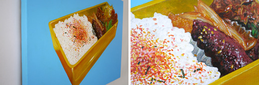 本シリーズは、弁当にあるミニマリズムを突き詰めて実践しようとする試みである。作家自らが料理し、弁当を作って食べる。その一連の流れのトレース及び圧縮として、絵画作品を描き起こす。そうすることにより、単なる弁当の概念を超えて、ひとつの”ミニマルな生き方”をも提示できるのではないだろうか。