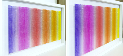 The true beauty of Minako Ishikawa's work is that the lines are drawn with a single thin acrylic stroke, which is arranged among thousands while subtly changing the color scheme.