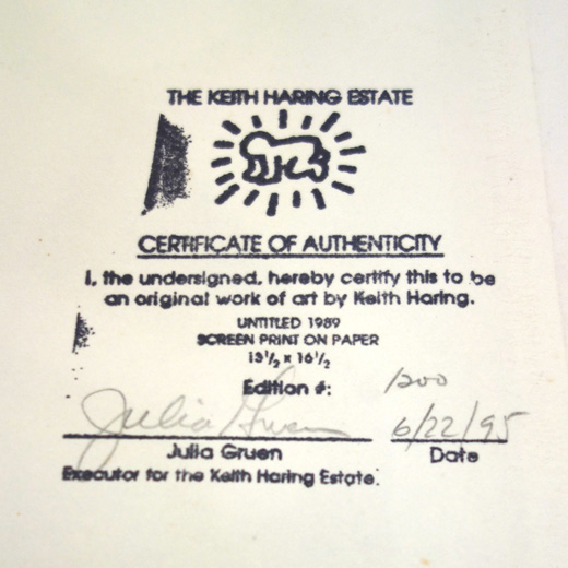 作品裏面に版元(刷師)サイン、エディションナンバー、制作年、証明スタンプ。額装裏窓で確認できます。