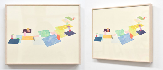 カードで駅を見立てたシリーズの1点。 街を形作る中心でもある駅の構造を、ペインタリ―な質感を取り入れながら色面で描きおこしています。 本作は都営地下鉄 両国駅の構造を、カードを使って見立てたものです。 同じモチーフで100号の油彩や色違いのドローイングなどもあります。