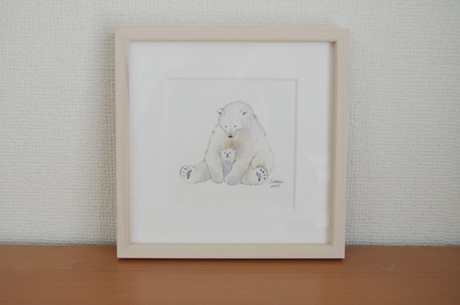 おもに森の生き物を題材にファンタジックな水彩画を発表し続けている村田なつか氏。童話本や絵本のワンシーンを思わせる場面構想力は、透明水彩の独特な滲みとマスキング技法とを駆使することで、より洗練された境地に達しています。動物イラストレーションの王道を承けつつ、自然の陰りや発光感まで豊かに表現できる余白の巧みな使い方が印象的。可愛らしいだけではなく、鉱石や食べ物と動物との組み合わせも試みるなど、グラフィカルでシュールな着想の面白さにも特徴があります。本作は、動物のしぐさシリーズからの一枚。個展「けもの」(2016年、代官山・GALLERY SPEAK FOR)で展示されました。