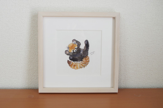 おもに森の生き物を題材にファンタジックな水彩画を発表し続けている村田なつか氏。童話本や絵本のワンシーンを思わせる場面構想力は、透明水彩の独特な滲みとマスキング技法とを駆使することで、より洗練された境地に達しています。動物イラストレーションの王道を承けつつ、自然の陰りや発光感まで豊かに表現できる余白の巧みな使い方が印象的。可愛らしいだけではなく、鉱石や食べ物と動物との組み合わせも試みるなど、グラフィカルでシュールな着想の面白さにも特徴があります。本作は、動物のしぐさシリーズからの一枚。個展「けもの」(2016年、代官山・GALLERY SPEAK FOR)で展示されました。
