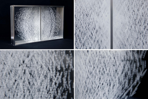 この世界に存在する物質は全て粒子で構成されていると言われています。一つでは目に見えないほど細かな素粒子が引き寄せあい、塊になって、肉眼でしています。私にはひとつひとつの細かな粒子が「個人の知覚」のように思え、たくさんの視点や感情などの情報が集積し、一つの物質や風景を作っているのではないだろうか。それを目に見える形に表現できないかと、制作を続けています。
