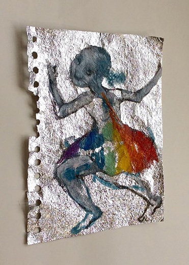 アルミ箔に油彩