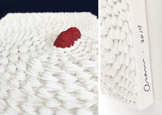 生クリームやフルーツなどのフェイクフードを駆使し、様々な作品を制作する渡辺おさむ氏。近年は海外での展覧会をはじめ、日本の各美術館にも作品がコレクションされています。2015年に開催された、故郷山口県での大規模な個展では過去最高の入場者数30,000人を動員し、美術に疎遠になりがちな人々にも好評を得ました。また文化勲章を受賞した高階秀爾氏の著書「ニッポン・アートの躍動」(講談社)にて、作品について評論されるなど、美術界においても注目が高まっています。