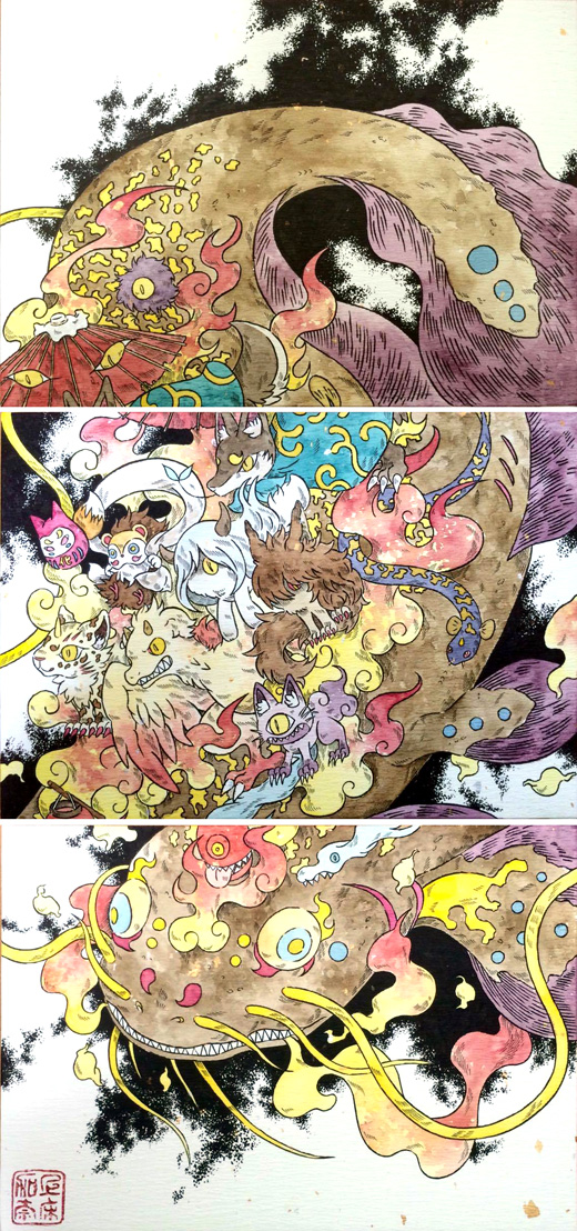 watercolor, pen, paper on panel