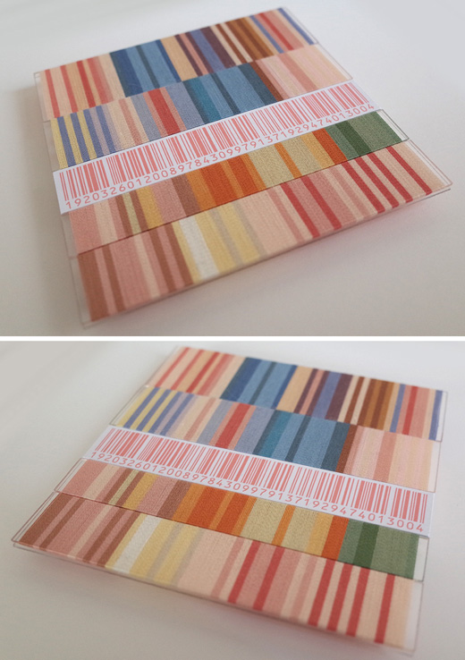 作品のバーコード部分は人間と人間の生活そのものを表し、カラー部分は人間をとりまく世界を表しています。この世界には様々な人間、様々な物で溢れています。小さな部分にフォーカスしてみると、人と人は時にお互いにうまく行かなかったり、物と物も組み合わせがちぐはぐであったりします。