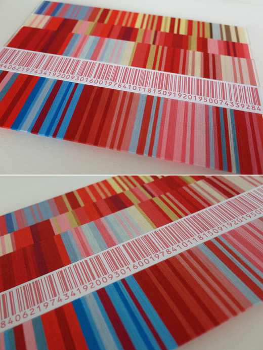 作品のバーコード部分は人間と人間の生活そのものを表し、カラー部分は人間をとりまく世界を表しています。この世界には様々な人間、様々な物で溢れています。小さな部分にフォーカスしてみると、人と人は時にお互いにうまく行かなかったり、物と物も組み合わせがちぐはぐであったりします。