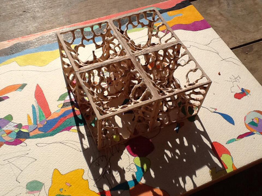 colorpencil, wood carving, paper on panel