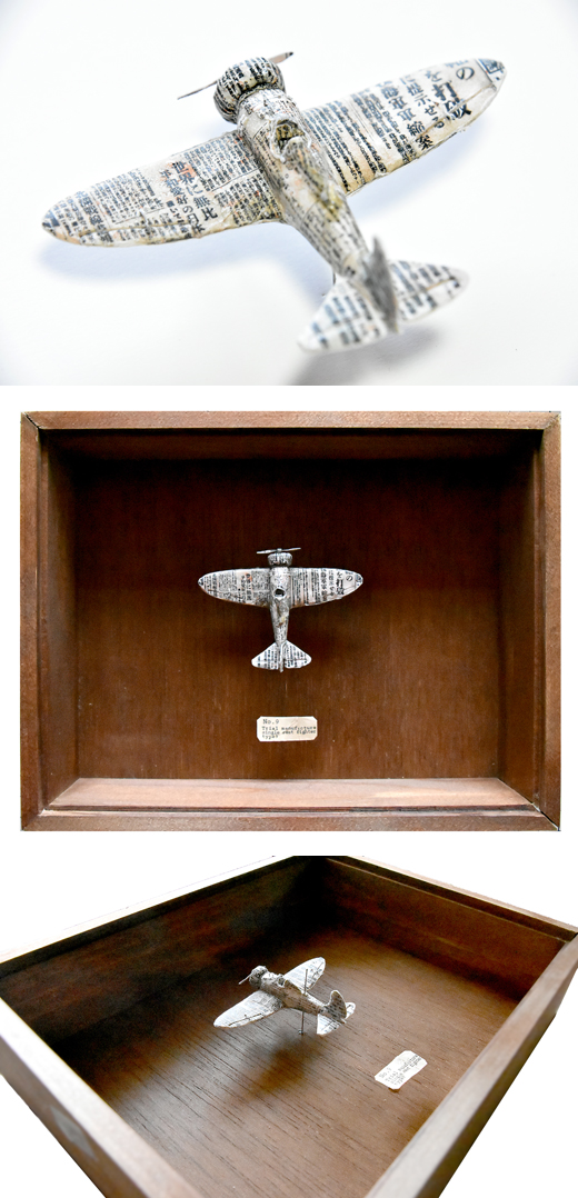 ケントボード紙・新聞縮小(1930年 日本)・虫ピン・水彩絵具(ケース:檜・アクリル板・柿渋塗装)
