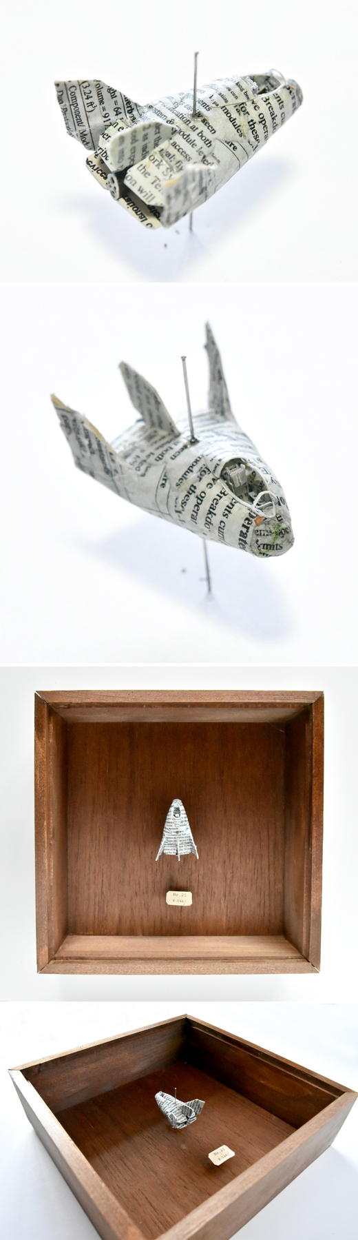 ケントボード紙・新聞縮小(1996年 米国)・虫ピン・水彩絵具(ケース:檜・アクリル板・柿渋塗装)