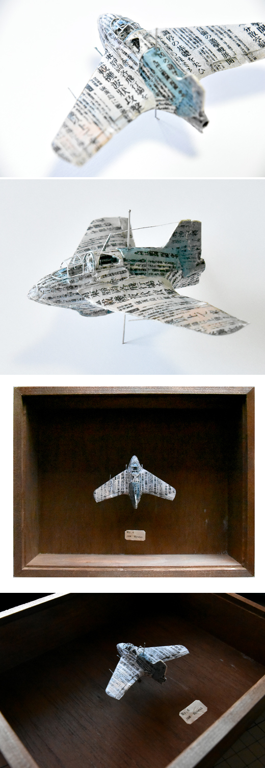 ケントボード紙・新聞縮小(1945年 日本)・虫ピン・水彩絵具(ケース:檜・アクリル板・柿渋塗装)