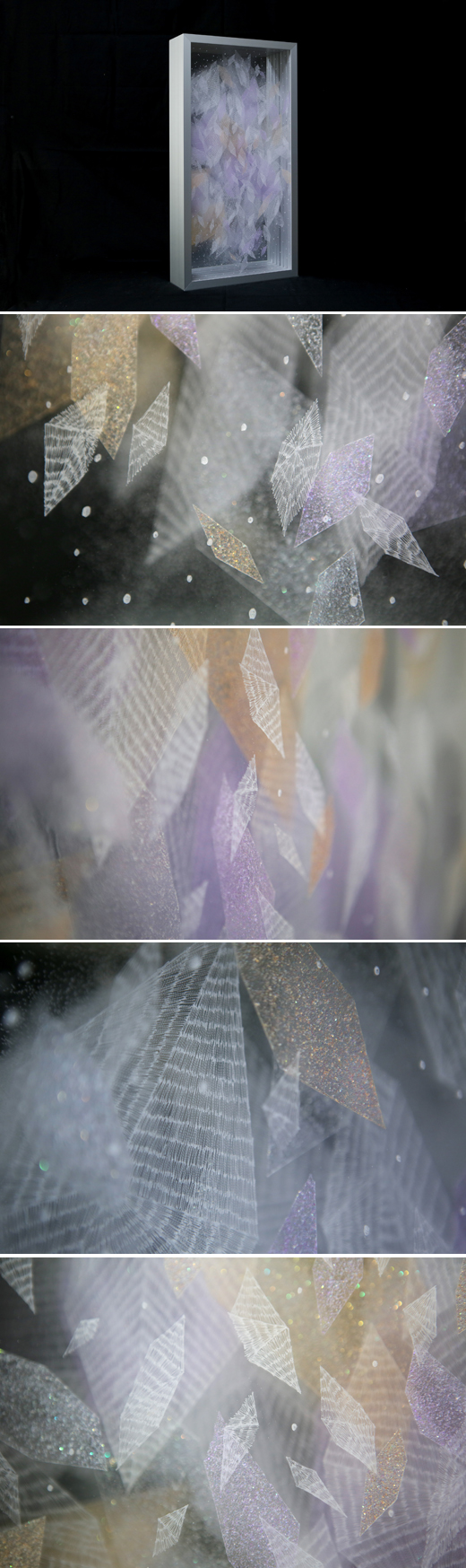 アクリル板を削って描画したものを重ねています。/素材:アクリル板、アクリルミラー板、木枠、アルミサッシ材、塗料