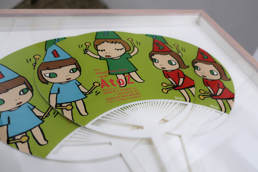 「A to Z」展覧会用に作られた団扇を3点まとめて額装した作品です。