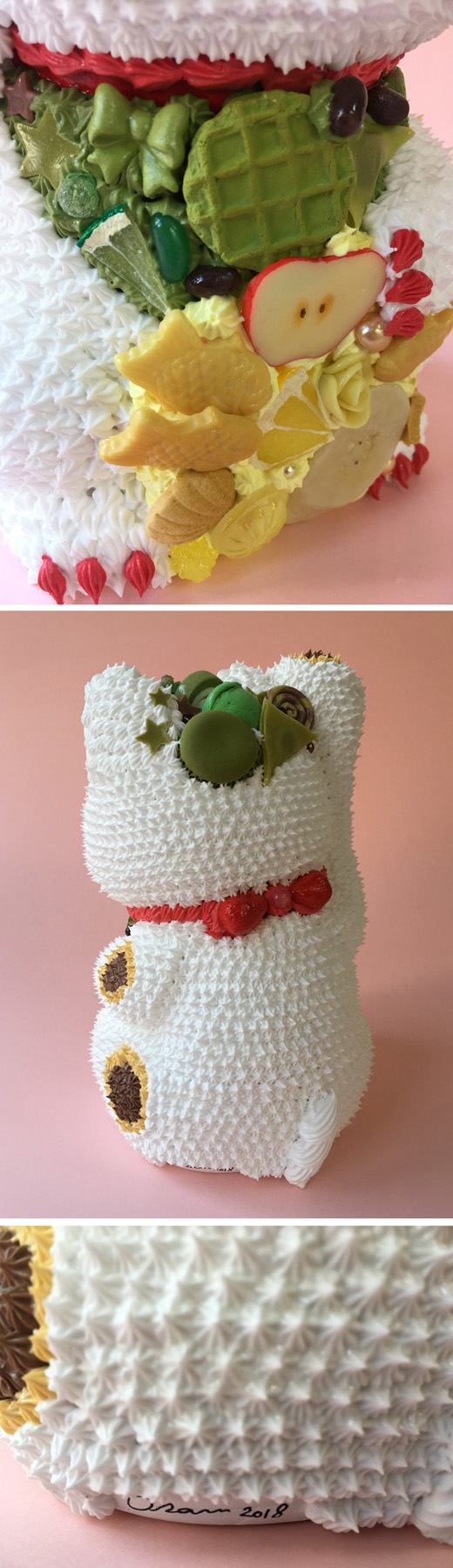 Osamu Watanabe has opened up his path as an artist with an original technique called Fake Cream, is also known by the name of the Cream Prince of the Art World, having gained popularity as a one and only artist. What is amazing about Watanabe is that he has been talking about the appeal of his own artwork to a wide range of art lovers and turning them into fans. In addition to his interesting viewpoint of substituting the cream in sweets that everyone has seen since childhood, the tactile cuteness, as well as the imposing presence of the pieces as works of art are all appealing and attract support from a great number of people. His solid point of view, which has an aura that instantly makes a room glamorous, adding a mysterious, magic-like feeling, is also a reason for his popularity. Breaking the record for visitors at the Kiyosu City Haruhi Art Museum (leading to travelling exhibition throughout Japan), publishing of 3 books, over 60 types of products developed, establishing a fan club, his popularity levels are far from being copied by other artists. Popularity often contributes for the valuation in price of artwork, and it is expected that he will continue to increase his activities as an artist supported by his fans. 。 It is not an easy feat to stand out among the many people trying to become professional artists, and the reality is that many will end up never having been in the spotlight. But Watanabe has continued to create without losing his sense of direction, and is one of the few artists who have gained success through his self-producing power. His strength to persist in his beliefs and to never give up is how he won appreciation as an artist. Although Watanabe has expanded his field of activity with dazzling speed, he is actually just 37 years old. Buying at least 1 piece from this artist is a must at the moment, when the number of foreign collectors is increasing.