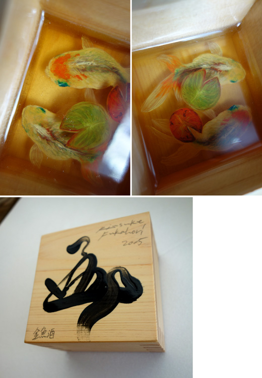 アクリル絵具、エポキシ樹脂、木(枡)