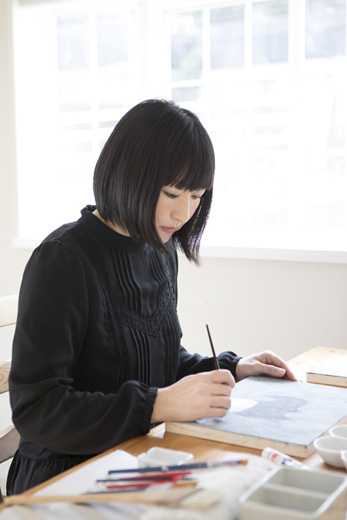 越後しの氏が一貫して追い続けているのは、その時々の自分の心象風景だといいます。念写のようにして日々、彼女の手元から生まれるユニークな「自画像」には、原画か版画かを問わず、詩的な含意の膨らみと民芸品的な可愛らしさがあります。本作は、2017年の個展「晴れ時々ひとりじめ」(西荻窪・ヨロコビto)にて展示されました。