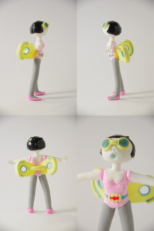 樹脂粘土にアクリル絵具を混ぜ込み成型/その他使用材料はニス、軽量粘土