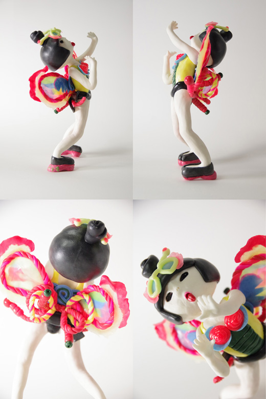 樹脂粘土にアクリル絵具を混ぜ込み成型/その他使用材料はニス、軽量粘土、心材で針金を使用