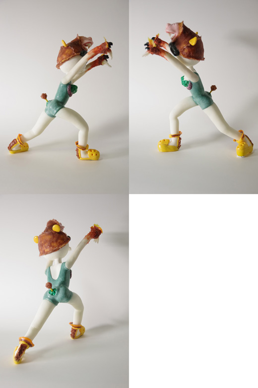 樹脂粘土にアクリル絵具を混ぜ込み成型/その他使用材料はニス、軽量粘土、心材で針金を使用