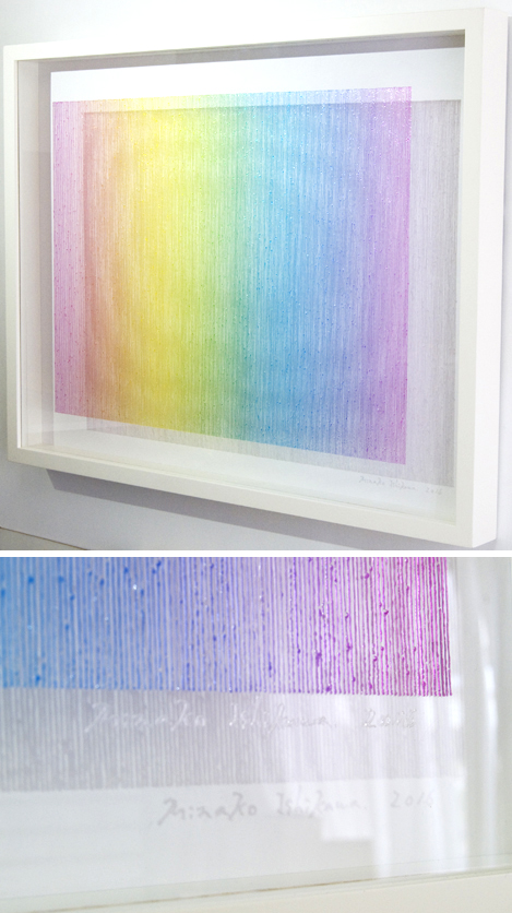 Artists who can draw beautiful gradations are hard to find in this world, right? The true beauty of Minako Ishikawa's work is that the lines are drawn with a single thin acrylic stroke, which is arranged among thousands while subtly changing the color scheme. It is not unusual for her to continue drawing a thin line with the same thickness in a straight line without it thickening left and right.It is surely what God makes. If you think that she paints her work with the colors of the rainbow on a transparent acrylic board, she will change it freely, like drawing with blue on a white canvas, and will attract viewers with her gradations. According to Ishikawa, this work is a work that extracts the "light" that fills the air. In addition, Minako Ishikawa's works feel crafty, beautiful and refreshing without being disturbing, giving us a feeling of openness that you will never get bored of even if you look at it many times. It seems that she has been able to earn high praise on international stage by holding exhibitions in Taiwan several times since two years ago. Despite being time consuming work, her work is highly popular because it is still being sold at a relatively affordable price, so it is advisable to purchase it now. She is one of the artists gathering attention who will grow even more in the future.