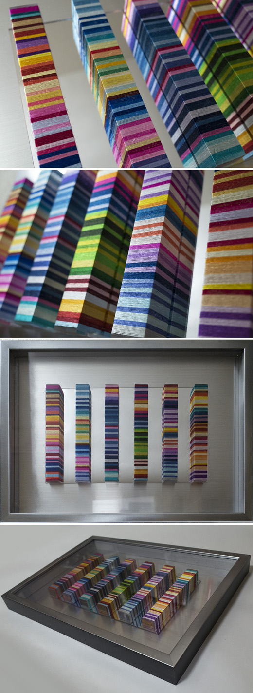 Her main series of artworks "Silent Invaders" are made by coiled colorful embroidery threads, she already made more than 200 works of this series.