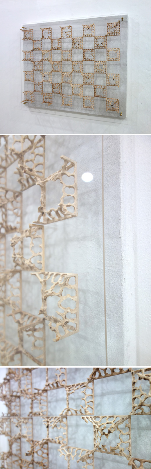 wood carving, acrylic on wood panel
