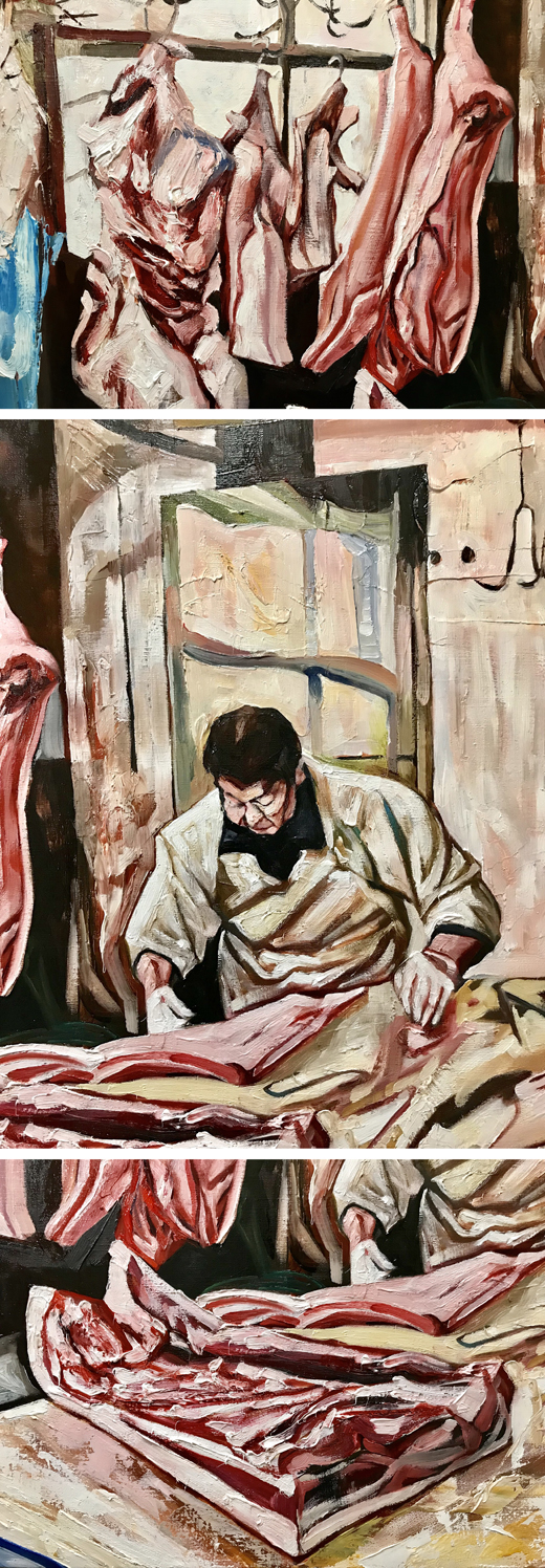 私の絵の多くは、油絵の具の厚塗りである。筆致の方向性や絵具の厚み、特に色はよく捏ねて、一つ一つ確認した上で要素を選んで描いている。