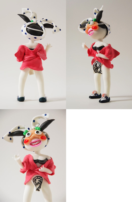 樹脂粘土にアクリル絵具を混ぜ込み成型/その他使用材料はニス、心材で針金を使用