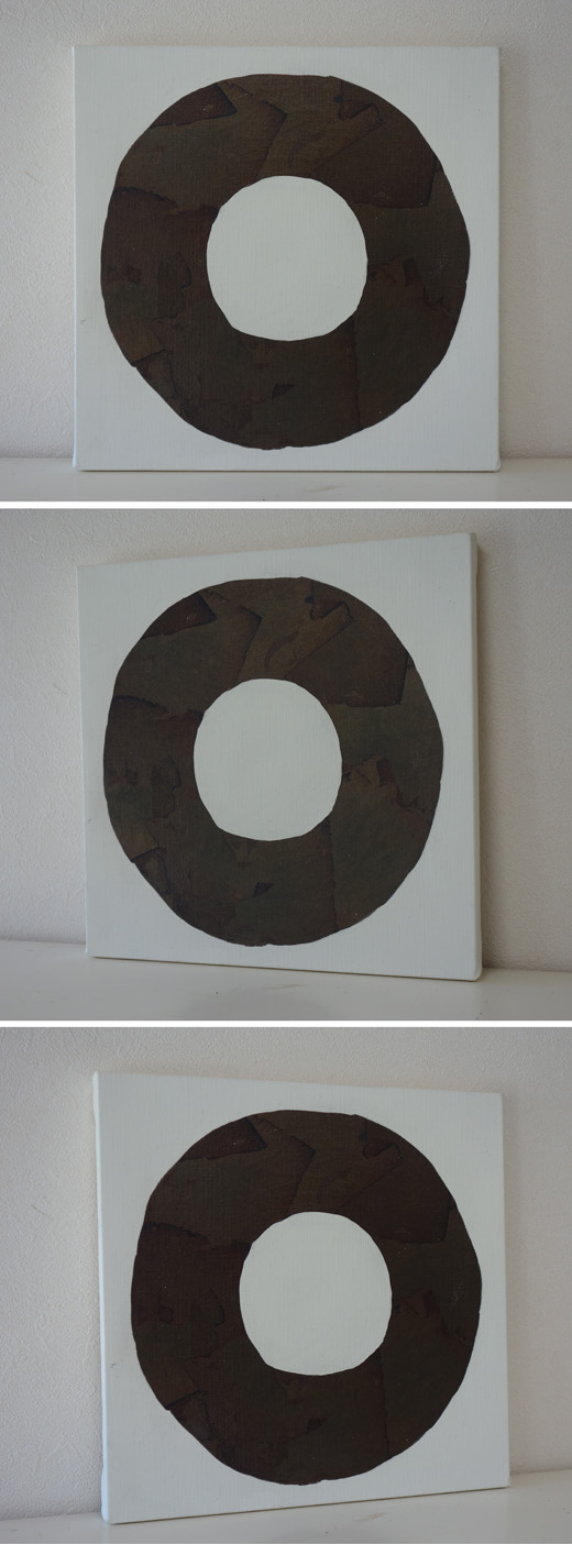 キャンバスに黒い箔を使い、円相を描いてみました。