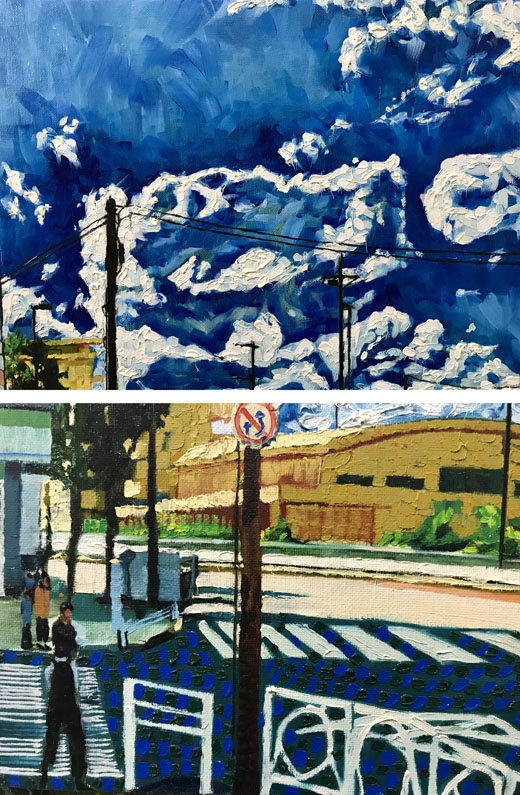 私の絵の多くは、油絵の具の厚塗りである。筆致の方向性や絵具の厚み、特に色はよく捏ねて、一つ一つ確認した上で要素を選んで描いている。