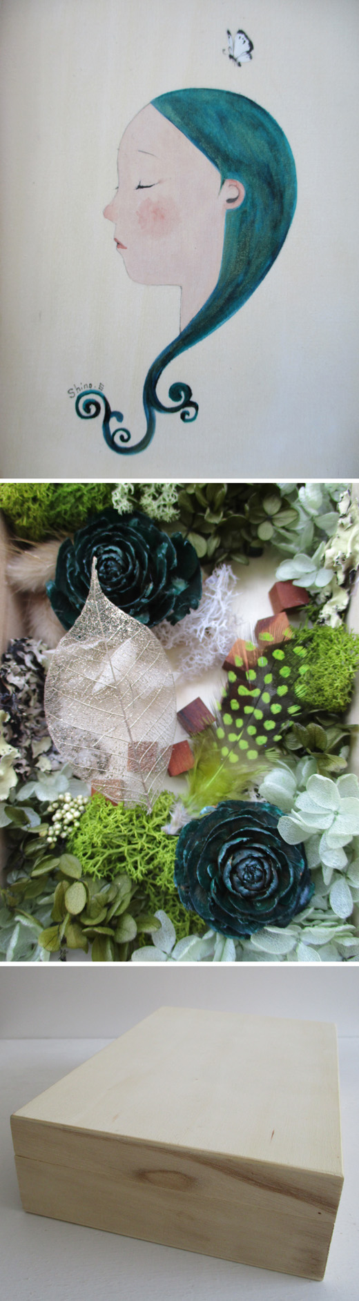 Acrylic on wooden-box, preserved flowers