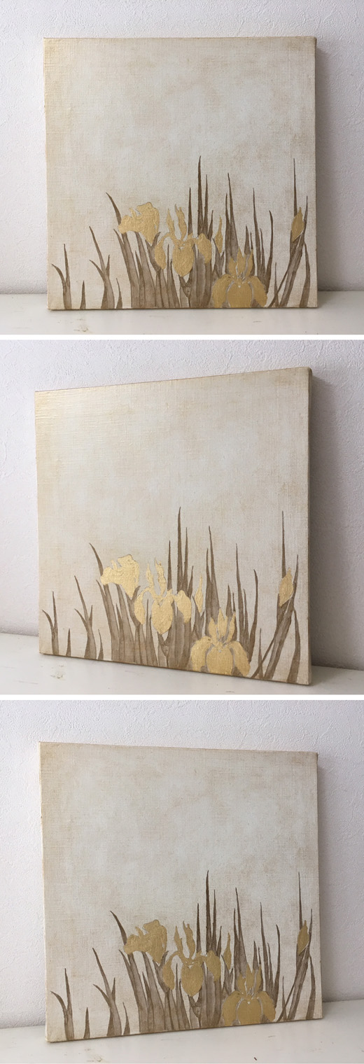 キャンバスに金色の箔と油彩で燕子花の絵を描きました。