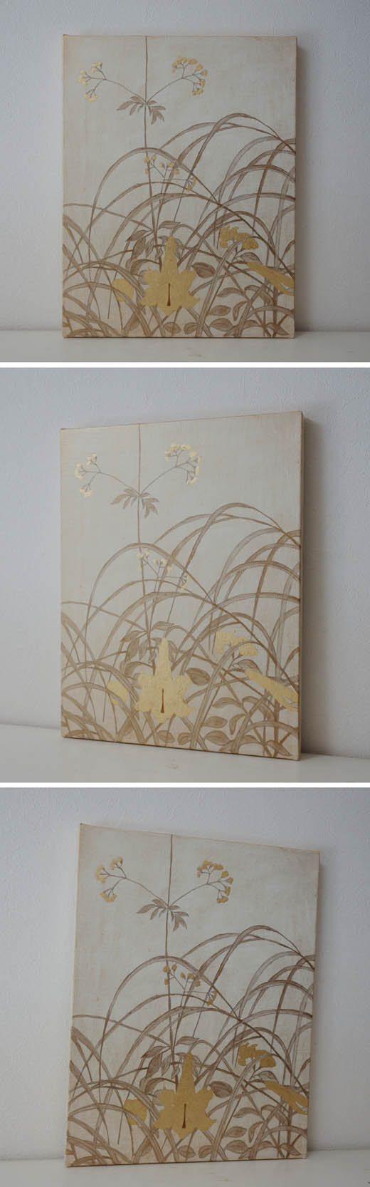 キャンバスに金色の箔と油彩で夏草の絵を描きました。