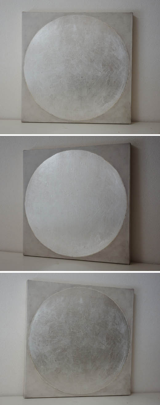 キャンバスに銀色の箔と油彩で月の絵を描きました。和風にも、モダンにも飾っていただけます。
