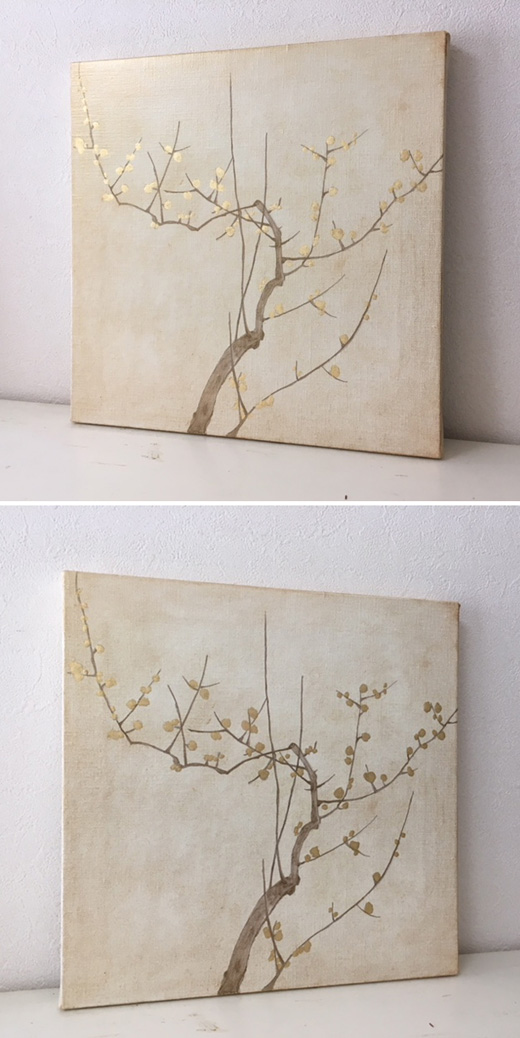 キャンバスに金色の箔と油彩で梅の木を描いて見ました。