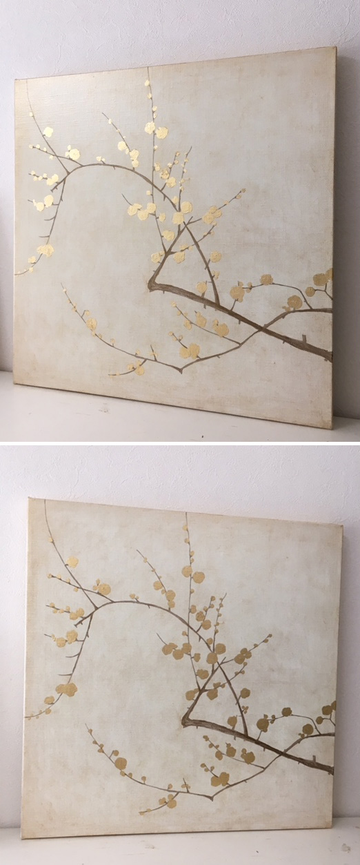 キャンバスに金色の箔と油彩で梅の木を描いて見ました。 す。