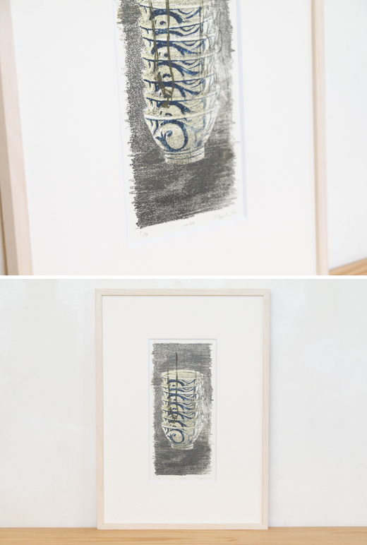 器や盆栽などの静物をモチーフにして、細やかな味わいの版画作品を制作し続けている神﨑氏。彼女の絵はほぼ全てが「謄写版」を使った版画です。ろう引きの原紙に鉄筆で文字や簡単な線画を印し、インキを滲ませて紙に刷る、いわゆるガリ版を用いた印刷技法は、現在ではほとんど使われなくなった遺産的技術ですが、神﨑氏はその特性に美術の領域から着目して駆使し、複雑な表現の可能性を示し続けている稀少なアーティストとして知られています。
