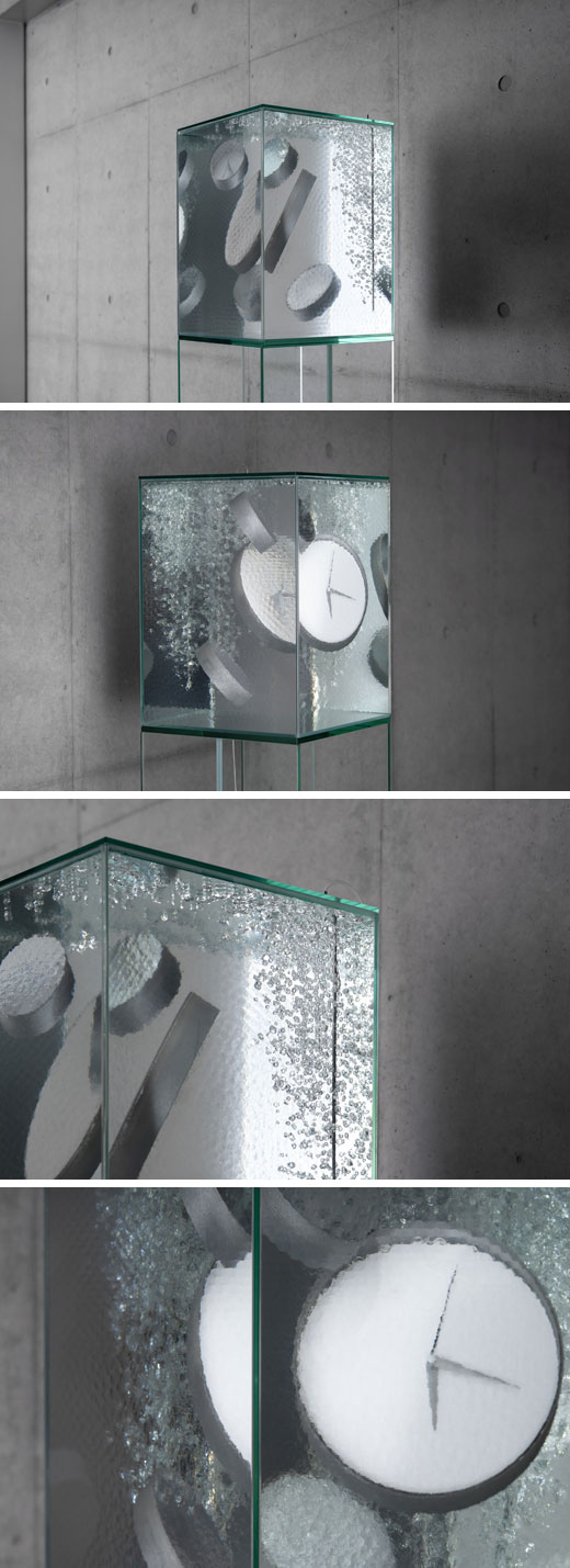 時計は実際に動作します。この作品は大きい順に左、右、左回転となります。