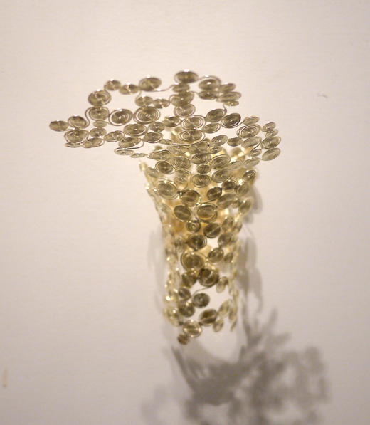 銅線を巻いたパーツをつないだ彫刻(銅線に真鍮メッキ)