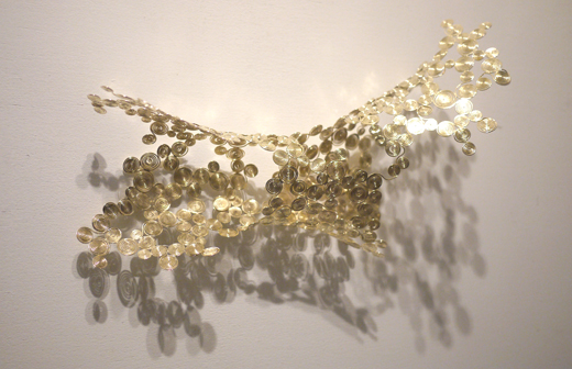 銅線を巻いたパーツをつないだ彫刻(銅線に真鍮メッキ)