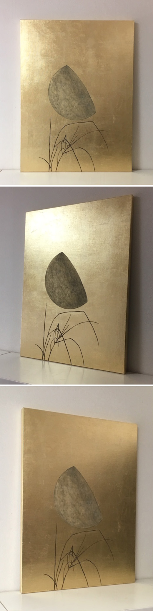 キャンバスに金色の箔と油彩で月と秋草図を描きました。平成30年浦安市美術展に出品された作品です。