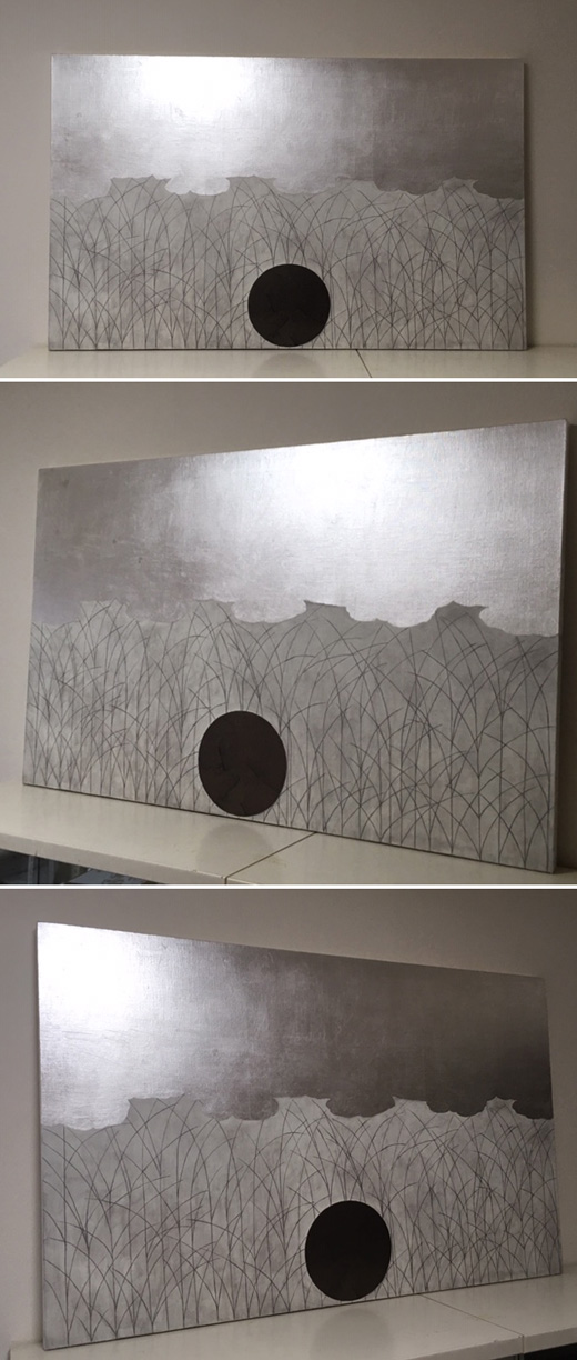 キャンバスに銀箔、アクリル