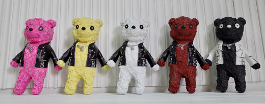 フェイクファーと粘土で制作したぬいぐるみを型取り、FRP、油性塗料